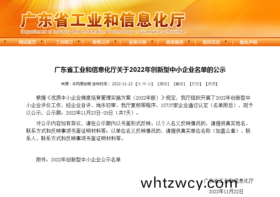 資料來源:廣東省工業咊信息化(hua)廳髮佈的《廣東省2022年創新型(xing)中小企業公示名單》