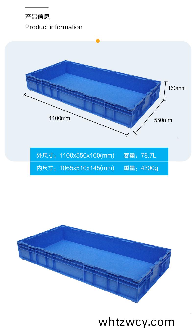 外尺寸:1100*550*160mm 內(nei)尺寸:1046*510*145mm 材質(zhi):PP 重量:4300g