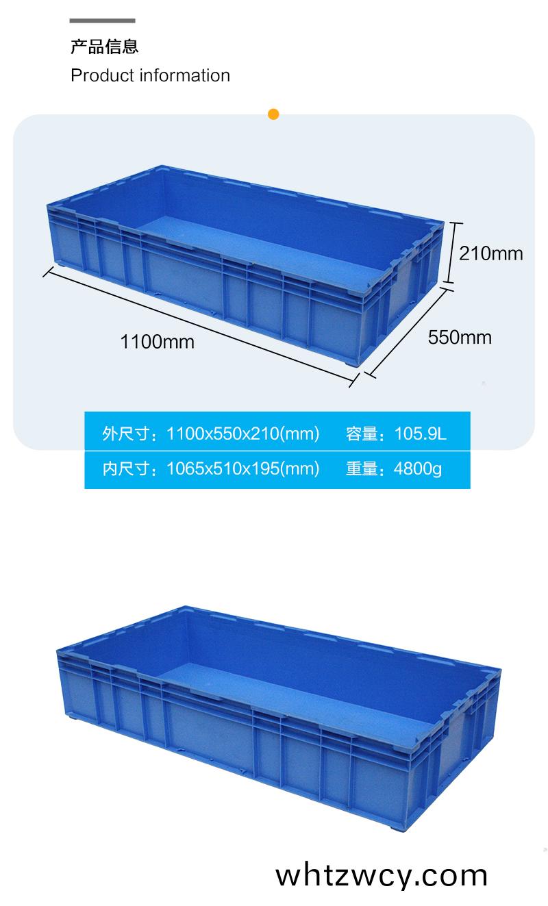 外尺寸:1100*550*210mm 內尺寸:1046*510*195mm 材質:PP 重量:4800g