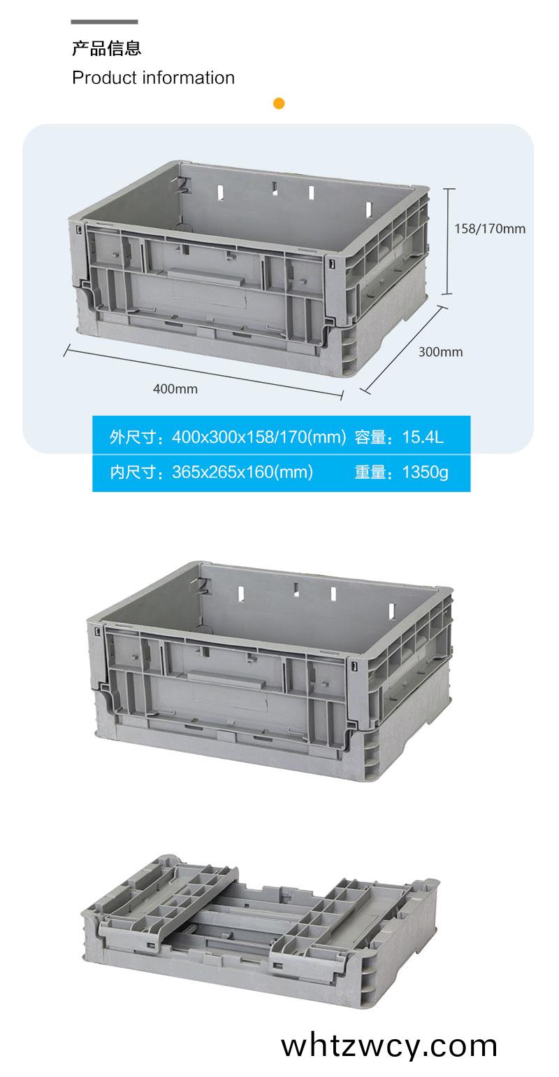 外尺寸:400*300*158/170mm 內尺寸:365*265*160mm 材質:PP 重(zhong)量(liang):1350g