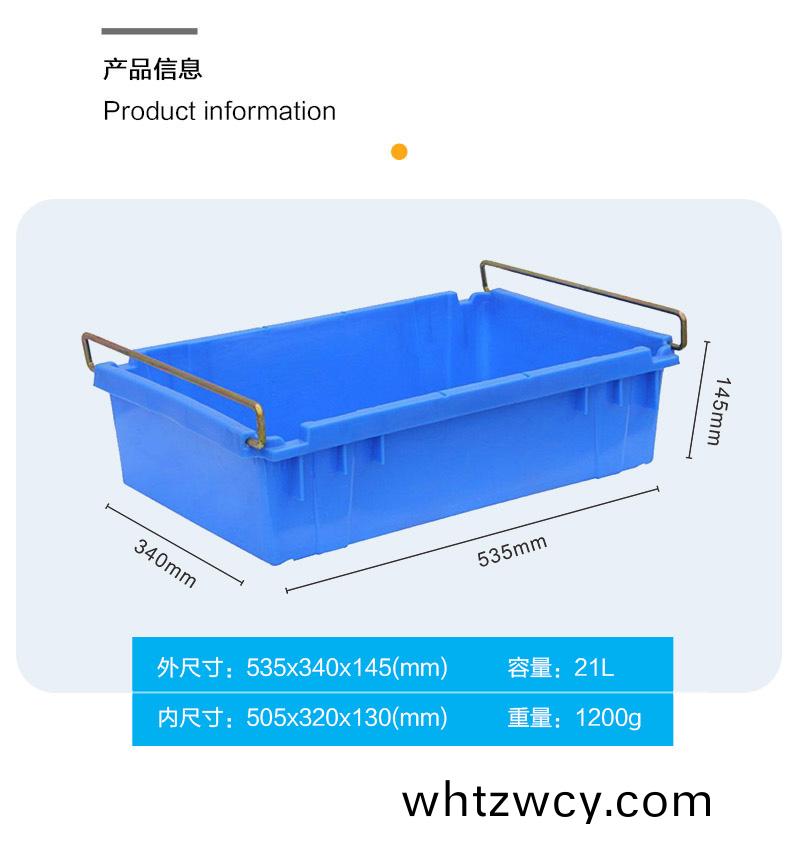 外尺寸:535*340*145mm 內尺寸:505*320*130mm 材質:PP 重量:1200g