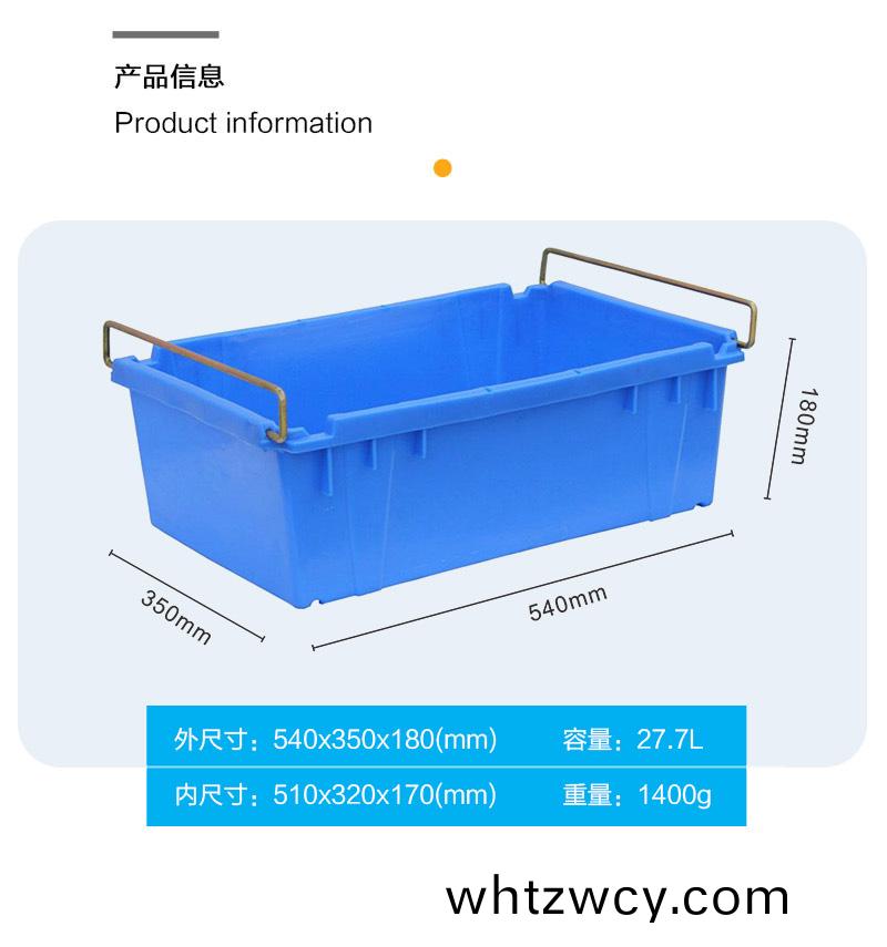 外(wai)尺寸:540*350*180mm 內尺寸:510*320*170mm 材質(zhi):PP 重量:1400g
