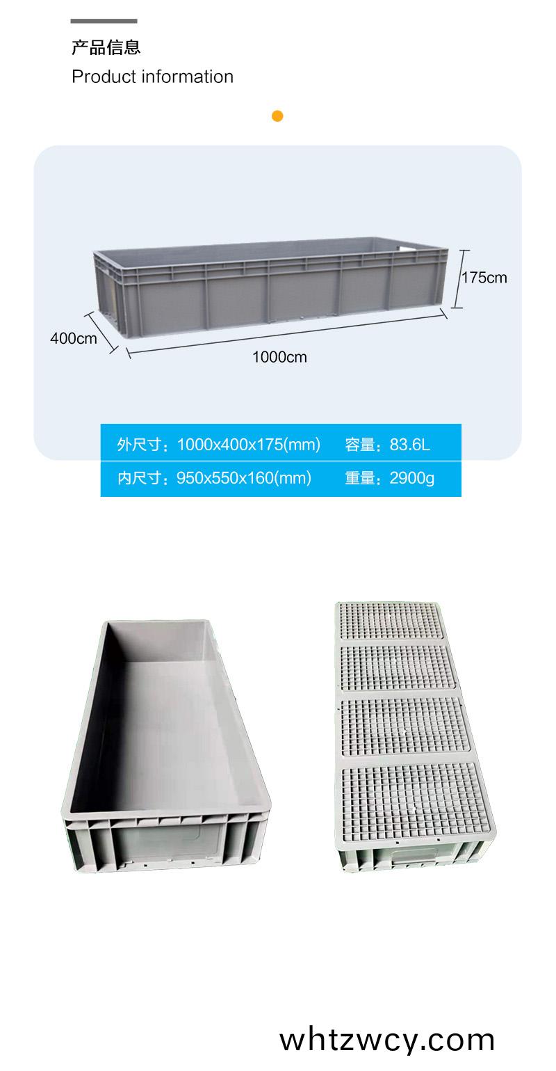 外尺寸:1000*400*175mm 內尺寸:950*350*160mm 材質:PP 重量:2900g