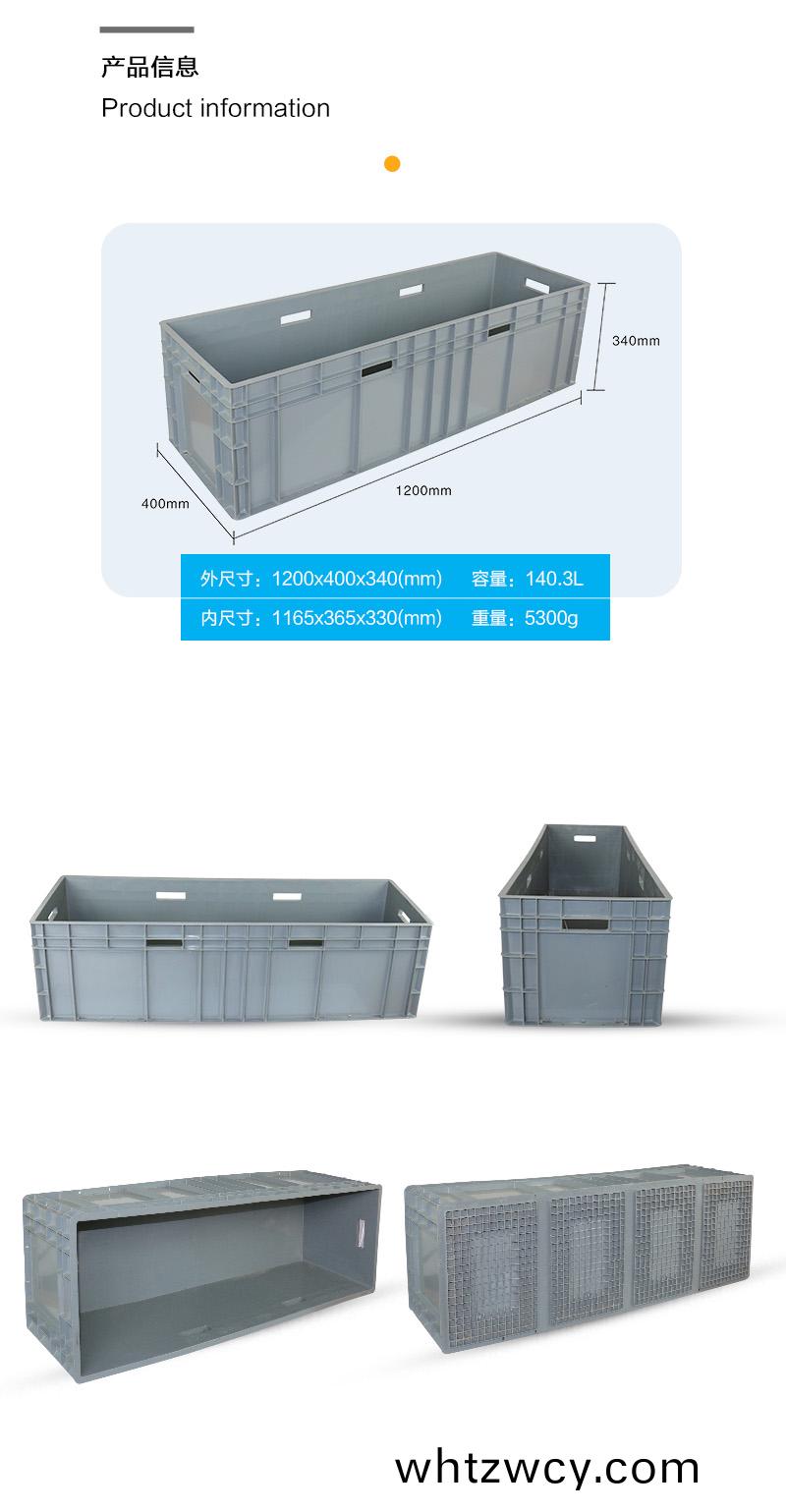 外尺(chi)寸:1200*400*340mm 內尺寸:1165*365*330mm 材質:PP 重(zhong)量(liang):5300g