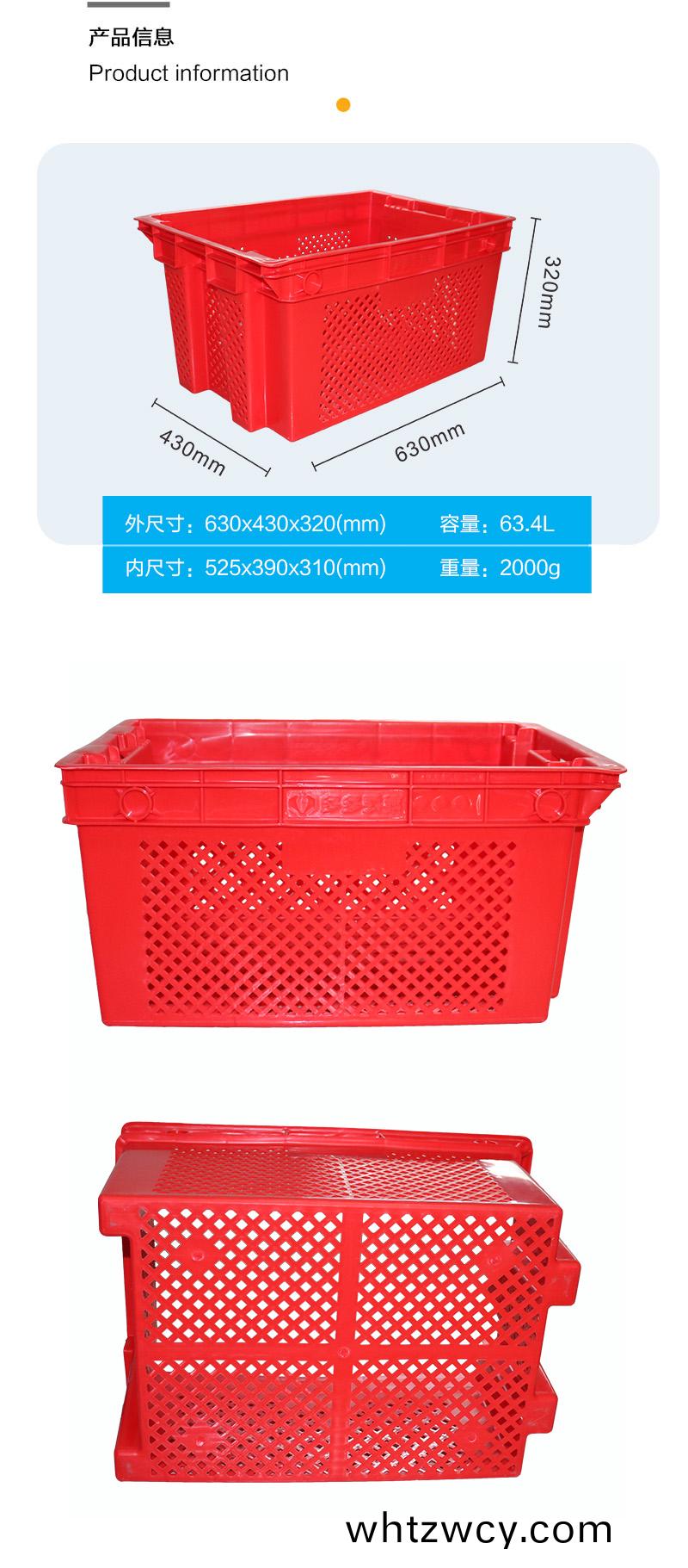 外尺寸:630*430*320mm 內尺(chi)寸:525*390*310mm 材質:PP 重量:2000g