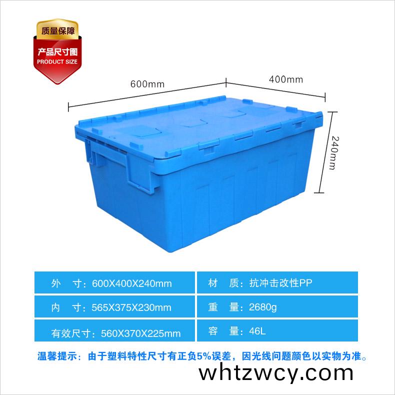 外尺寸:600×400×240mm 內尺寸:568×375×230mm 材(cai)質:PP 重量:2680g