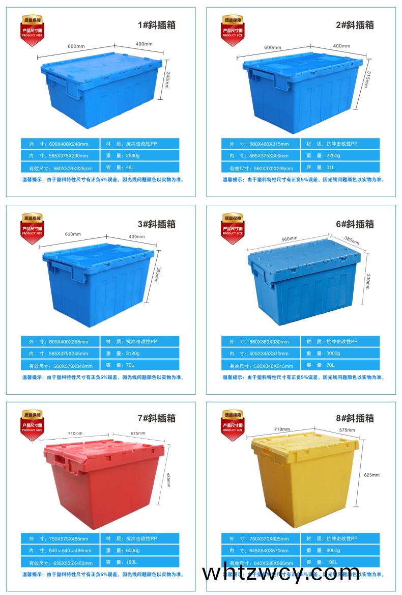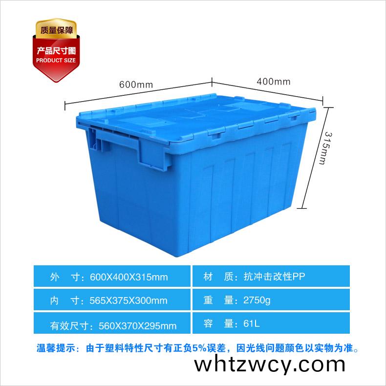 外尺寸:600×400×315mm 內尺寸:568×375×300mm 材(cai)質:PP 重量:2750g