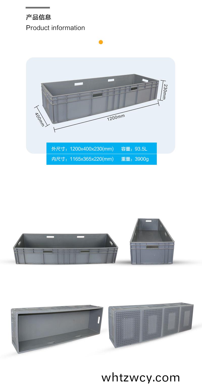 外尺寸:1200*400*230mm 內尺寸:1165*365*210mm 材質:PP 重量:3960g