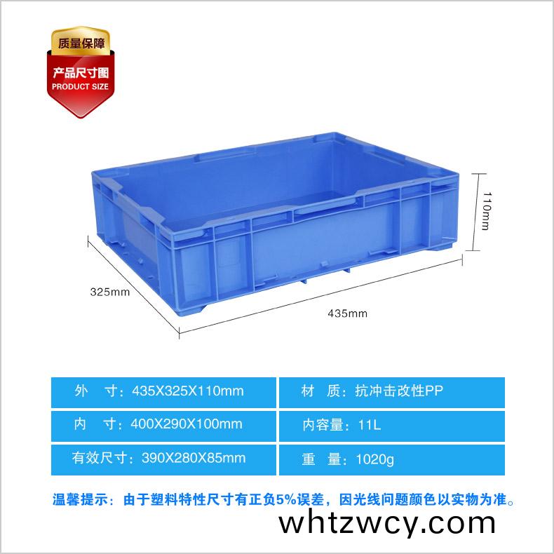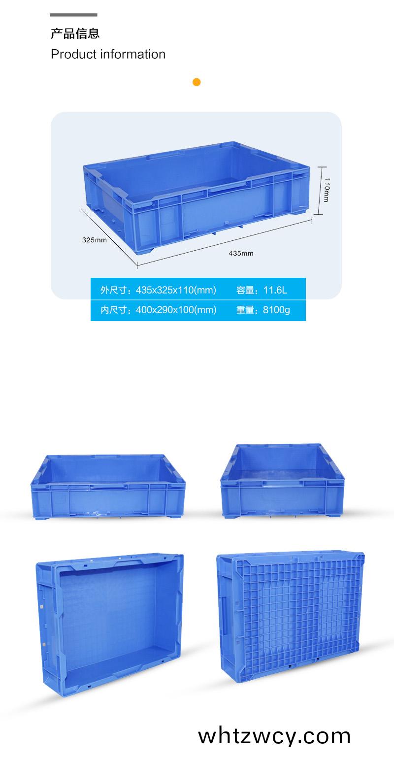 外尺寸:435*325*110mm 內尺寸:400*290*100mm 材質:PP 重(zhong)量:810g