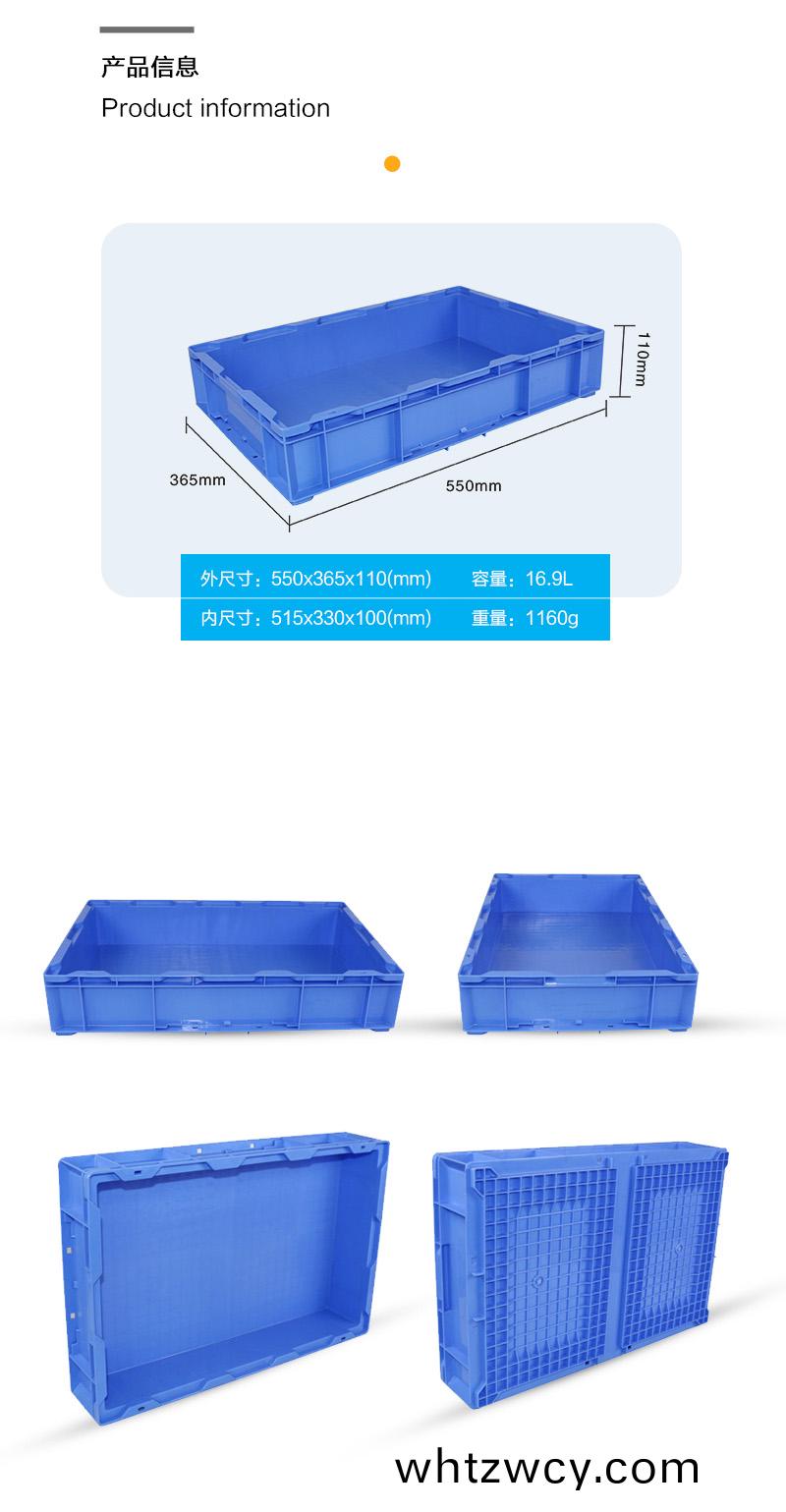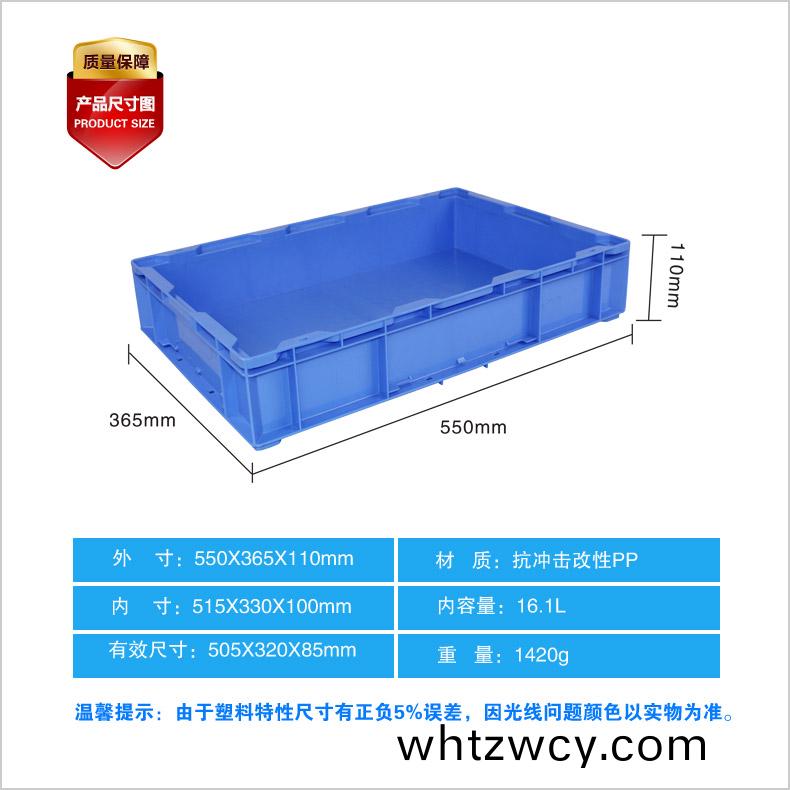 外尺寸:550*365*110mm 內尺寸:515*330*100mm 材(cai)質:PP 重量:1130g