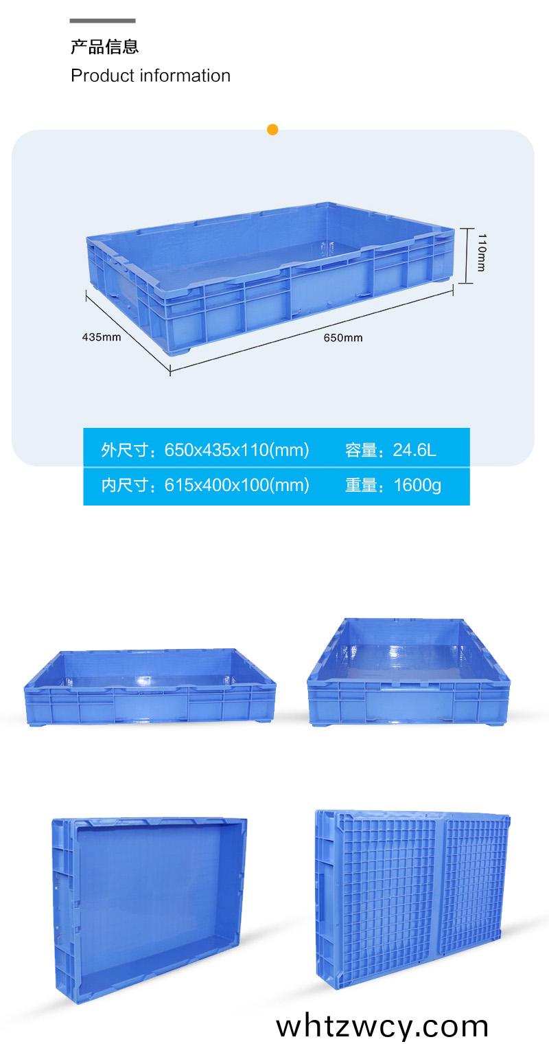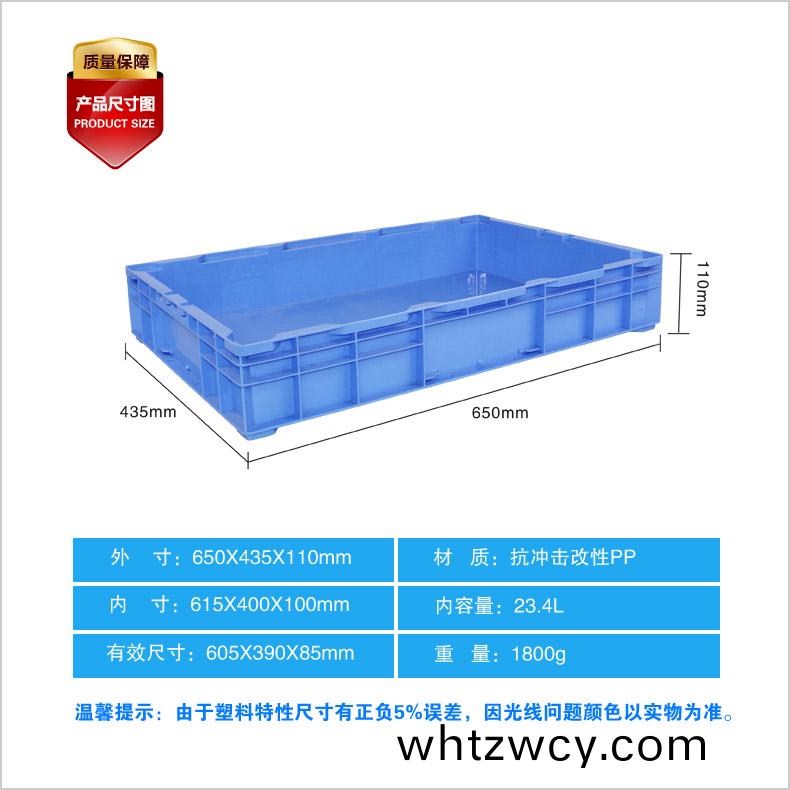外尺寸:650*435*110mm 內尺寸:615*400*100mm 材質:PP 重量:1600g