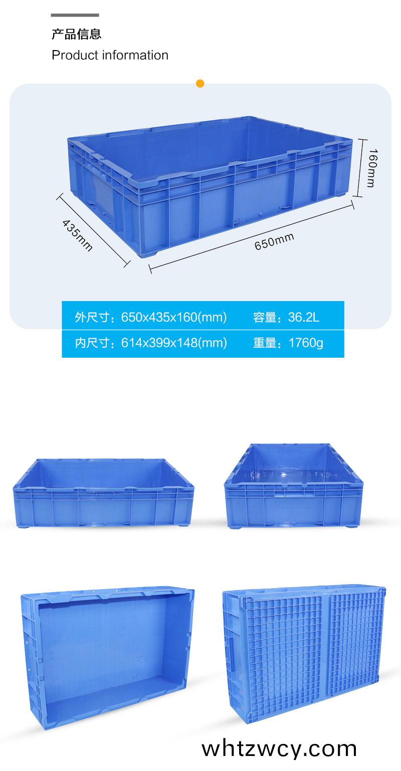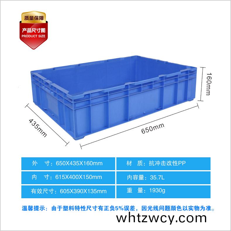 外尺寸:650*435*160mm 內尺寸(cun):614*299*148mm 材質(zhi):PP 重量:1760g