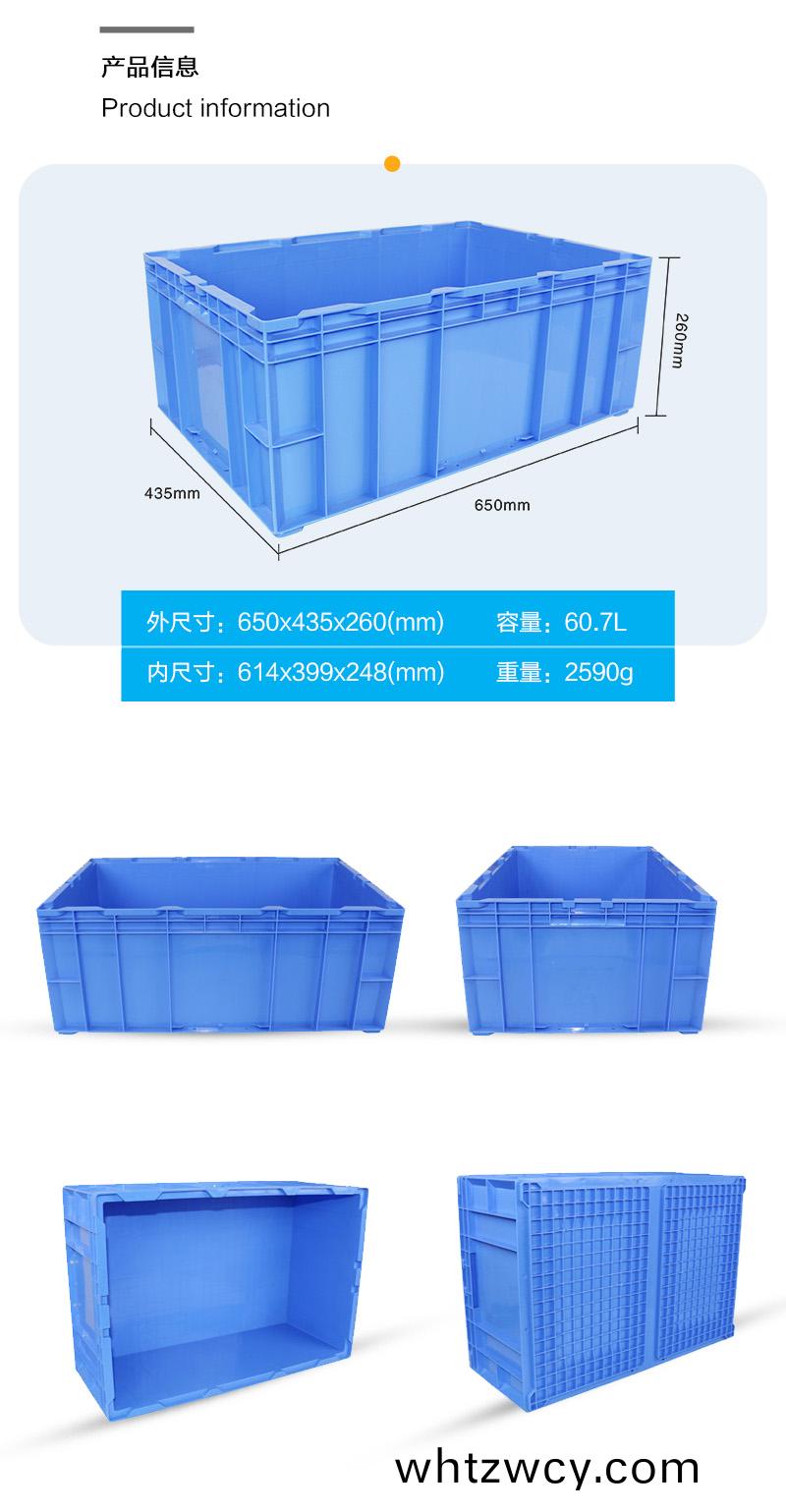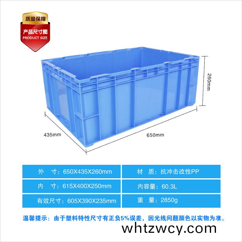 外尺寸:650*435*260mm 內尺(chi)寸:614*399*248mm 材質:PP 重量:2590g
