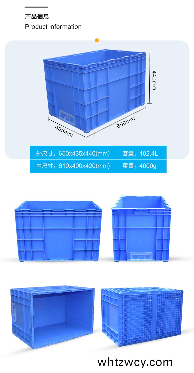 外尺寸:650*435*440mm 內尺寸:610*400*420mm 材(cai)質:PP 重量:3400g