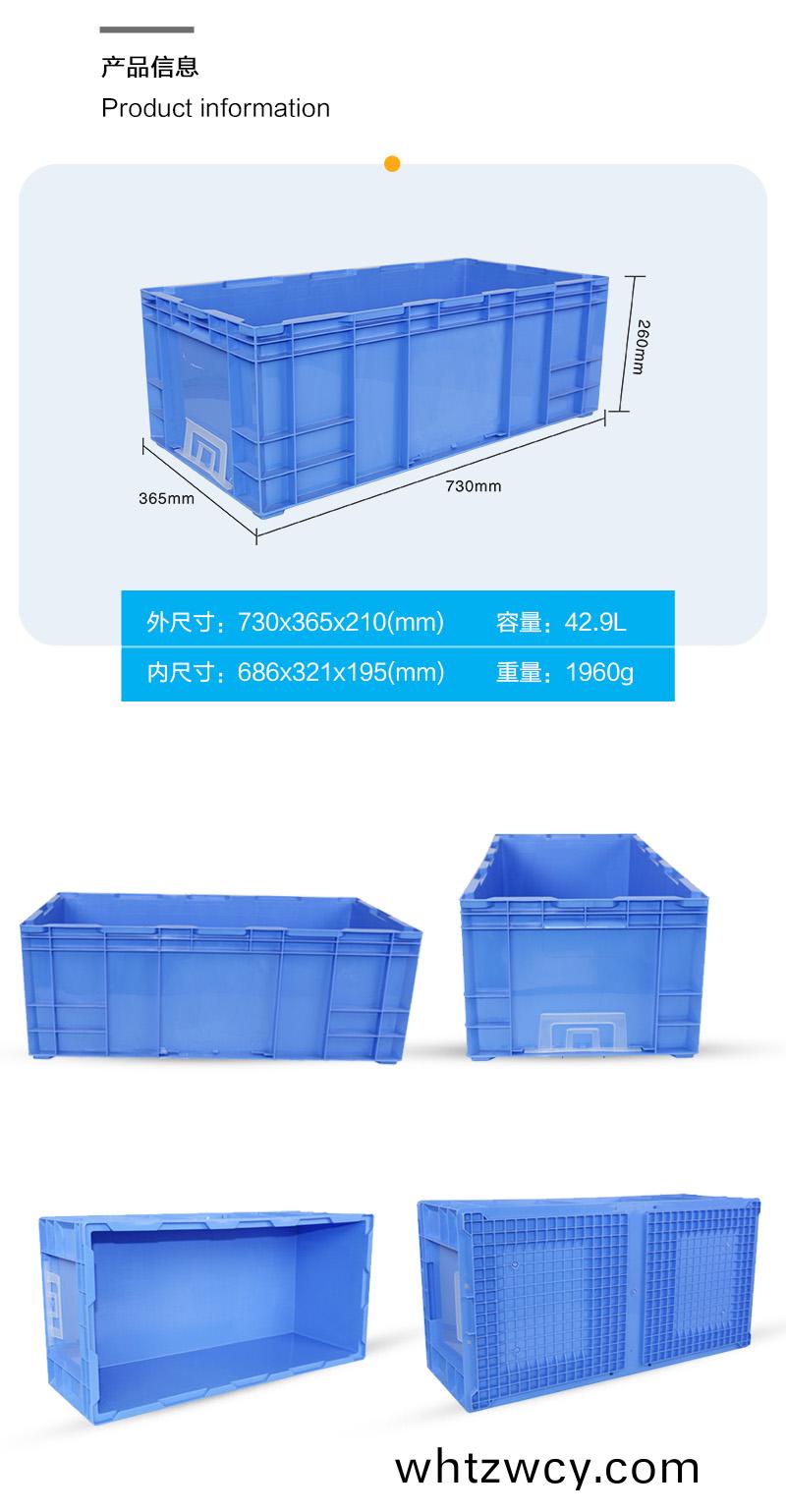 外尺寸:730*365*260mm 內尺(chi)寸:649*321*245mm 材質:PP 重量:2800g