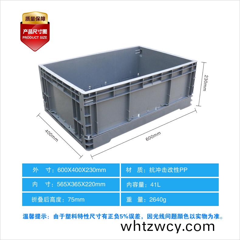 外(wai)尺寸:600*400*230mm 內尺寸:565*365*220 材質:PP 重量:2640g