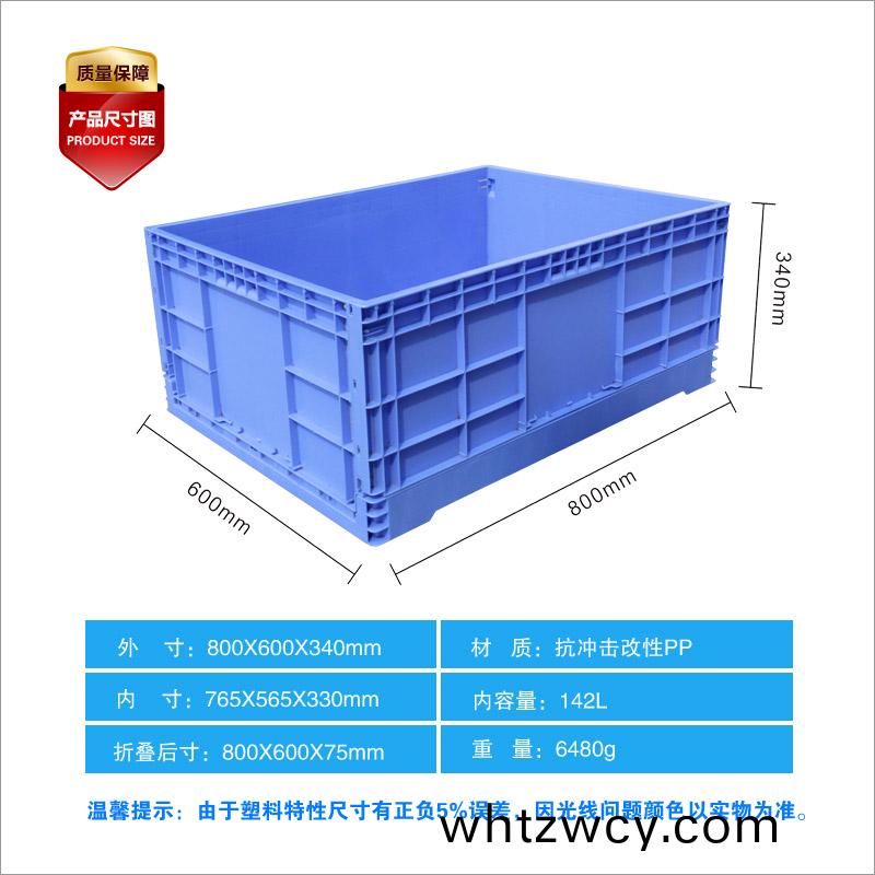 外尺寸:800×600×340mm 內尺(chi)寸:765×565×330mm 材(cai)質:PP 重量:6480