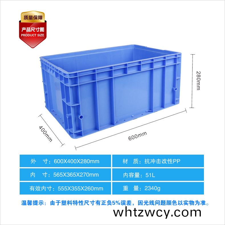 外尺寸:600×400×280mm 內尺寸:560×360×260mm 材質(zhi):抗衝擊改性PP 重量:2340g