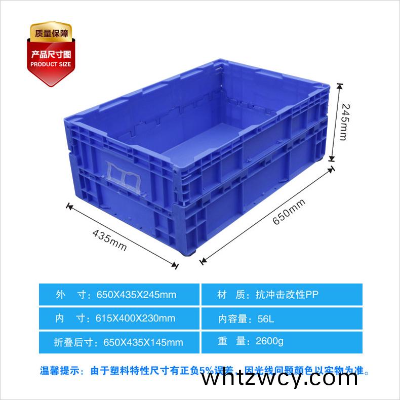 外尺寸:650*435*245mm 內尺寸:610*400*225mm 材質:抗衝擊改性PP 重量:2600g