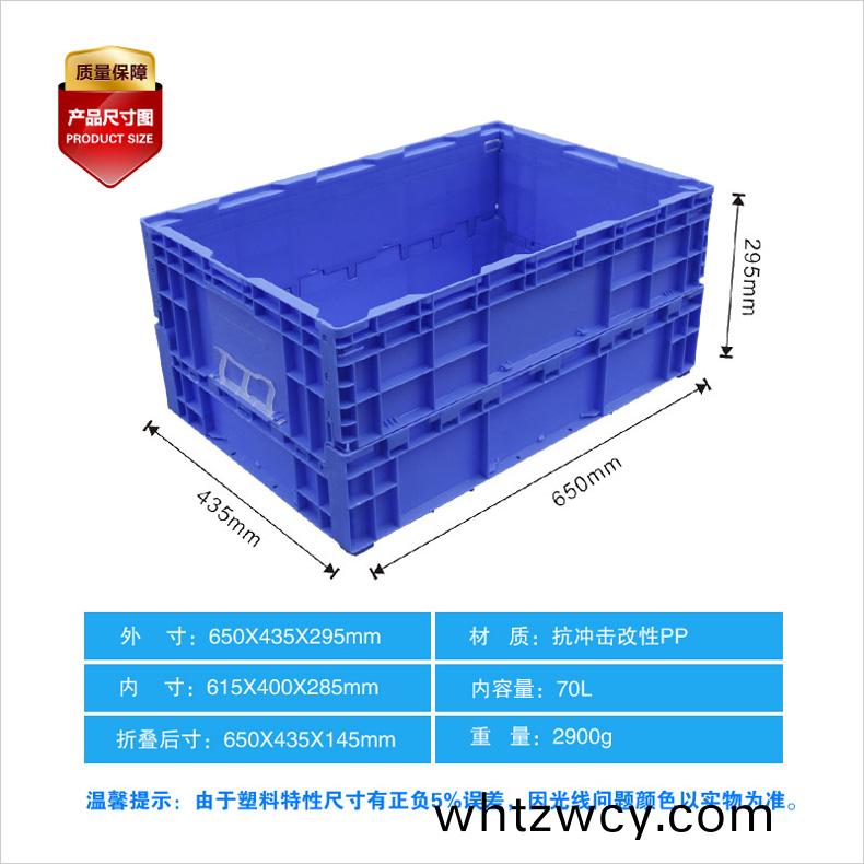外尺寸:650*435*295mm 內尺寸:610*400*285mm 材質:抗衝擊改性PP 重量:2900g