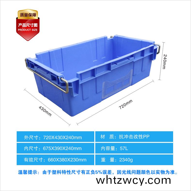 外尺寸:720*430*240mm 內尺寸(cun):675*390*240 材質:抗衝擊改(gai)性PP 重量:2340g