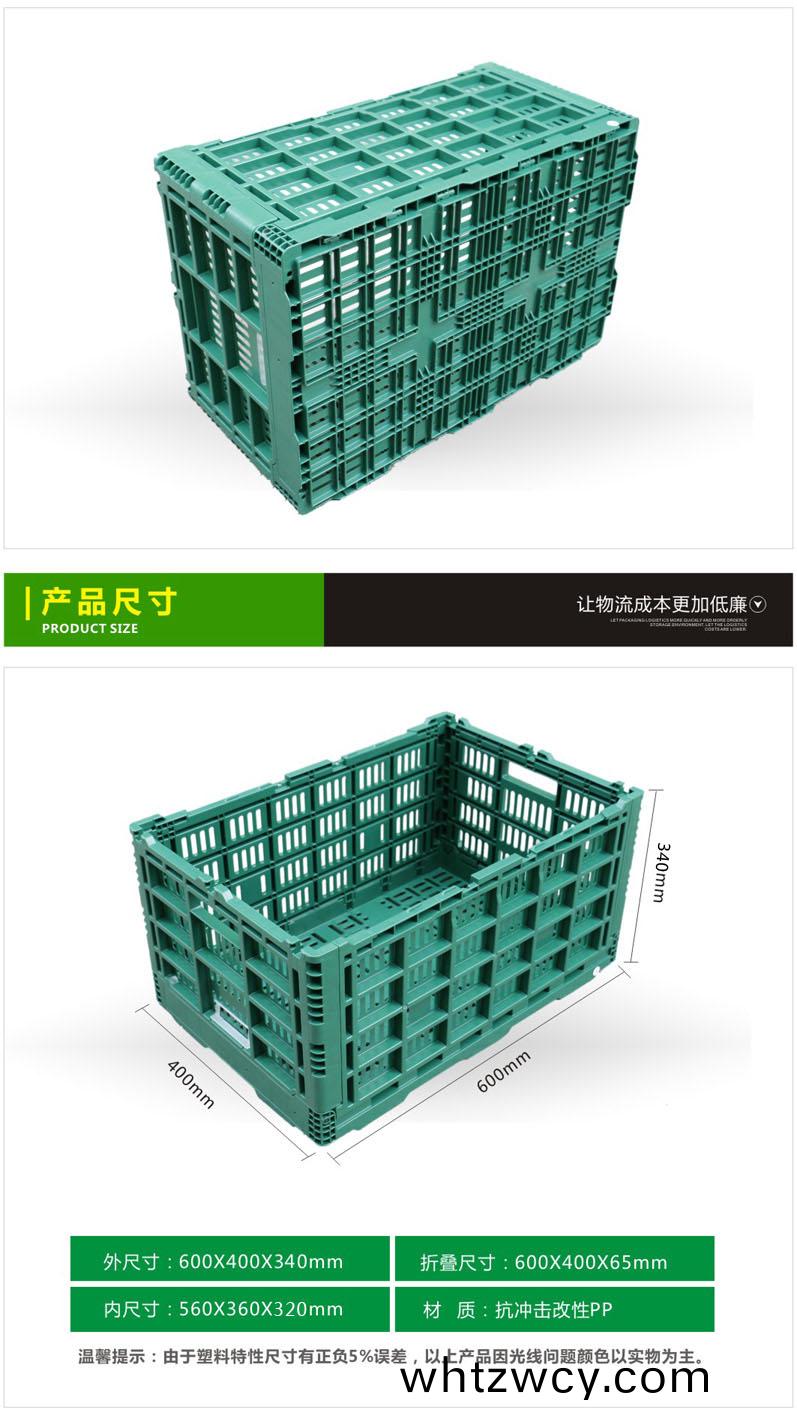 外尺寸:600*400*340mm 內(nei)尺寸:560*360*320mm 材(cai)質(zhi):抗衝擊改性PP 重量:2.9kg