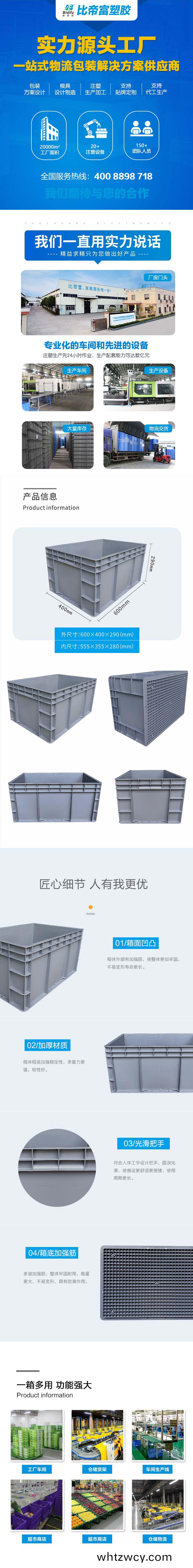 外(wai)尺寸:600*400*290 內尺(chi)寸:555*355*280 材質:PP 重量:2100g
