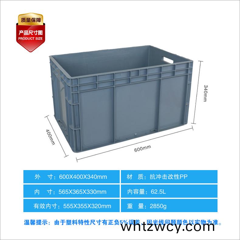 外尺寸:600X400X340mm 內(nei)尺寸:565X365X330mm 材質(zhi):抗衝擊(ji)改性PP 重量:2.56kg